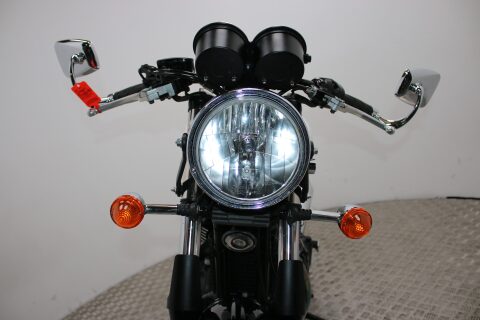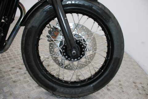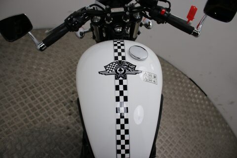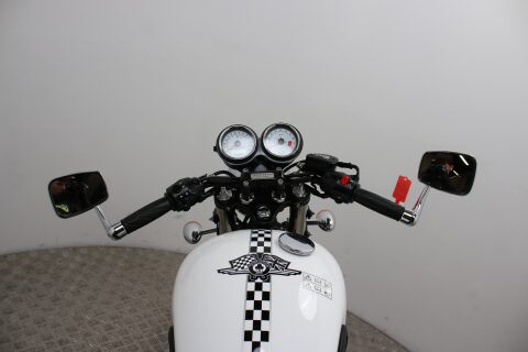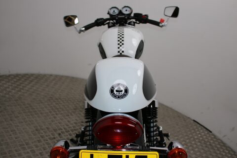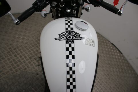 The Ace gets a unique black and white paintjob, 'Oxblood' custom seat, bar-end mirrors, a handlebar plaque and officially sanctioned Ace Café logos and comes with the usual wire wheels and 865cc parallel-twin engine.