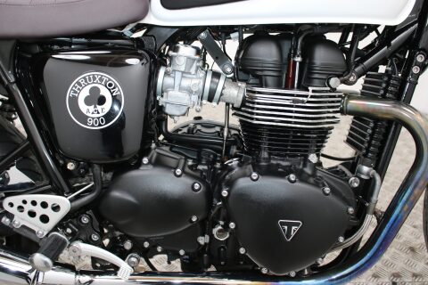 Featuring the same engine as the renowned Triumph Thruxton, power is provided by Triumph's 865cc signature parallel twin from the Bonneville. Producing peak power of 69PS and 69Nm of torque across a broad rev range, the Thruxton delivers its performance with a suitable increase in the edginess of the exhaust note from the classically styled chrome silencers.